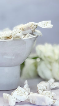 A handmade ceramic footed bowl finished in one of five considered tones and filled with imported gourmet nougats. A thoughtful gift to enjoy in the moment, with a piece that remains long after.